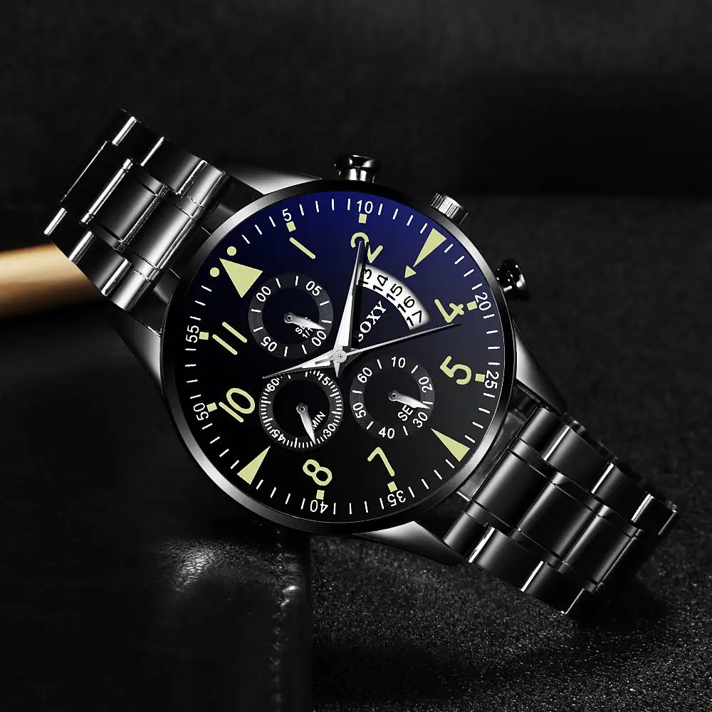 SOXY, мужские часы, классические, черные и серебряные, с календарем, кварцевые мужские наручные часы, светящиеся, водонепроницаемые, мужские часы, relogio masculino, металлические, деловые часы