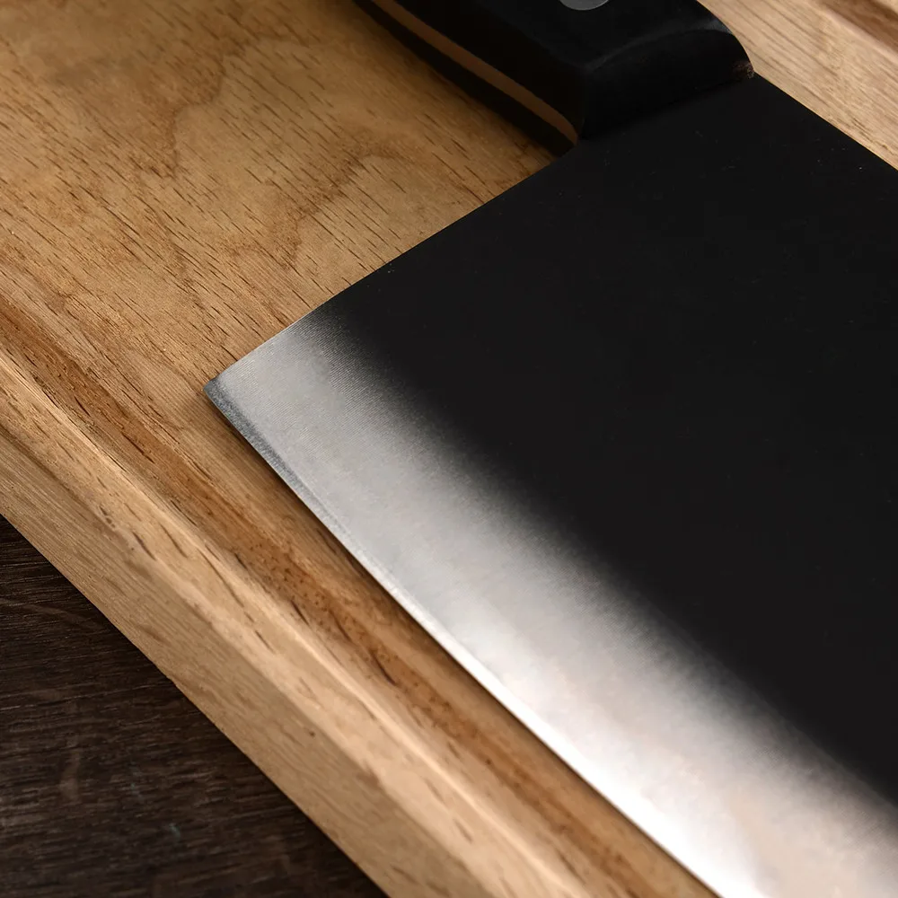 Этот нож шеф-повара мясника изготовлен из нержавеющей стали 7cr17, ручка и лезвие интегрированы без пайки, который является прочным и прочным для устранения сломанной ручки