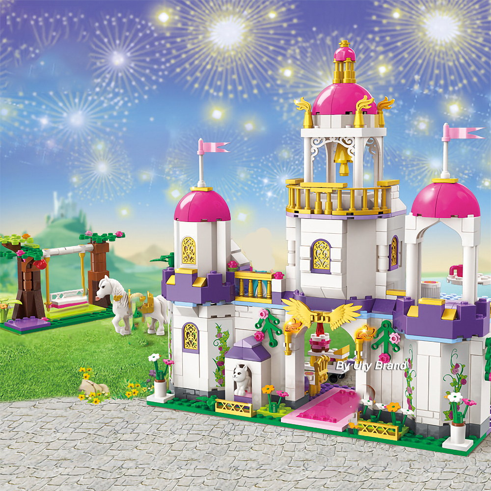 1. Белое банкетное здание имеет розовую крышу и золотую колокольню посередине.
