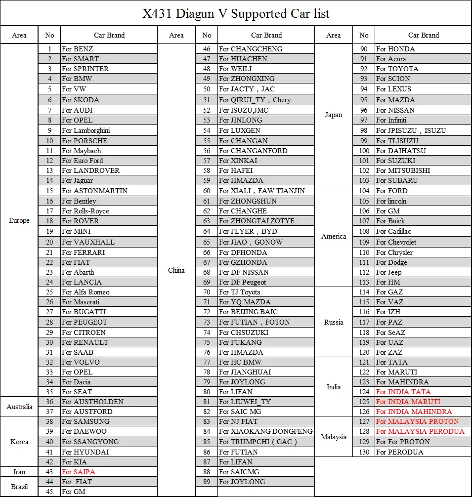 1. Программное обеспечение:X431 V поддерживает некоторые автомобили специальной области, чем Diagun V, например для ТАТА Индии, для протона Малайзии.