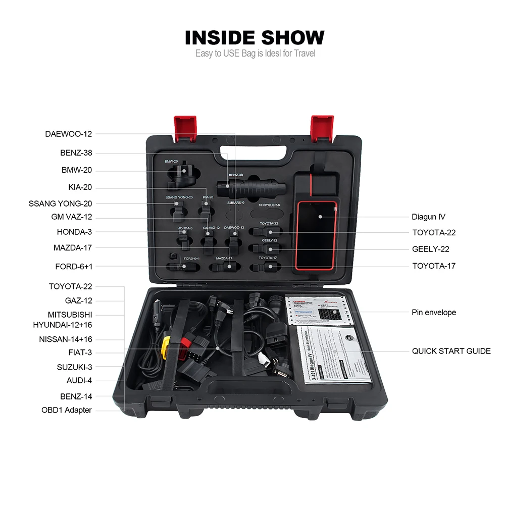 X-431 Diagun V может диагностировать систему электронного управления преобладающими моделями Автомобилей, охватывающих азиатские, европейские, американские и китайские. Вся серия автомобильных брендов и диагностика автомобильной системы делают ее профессиональным инструментом для диагностики автомобиля.