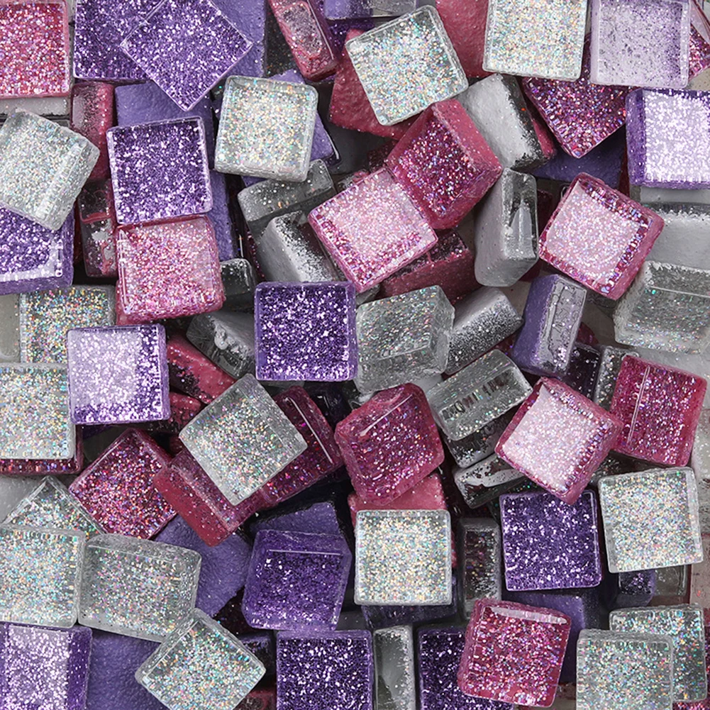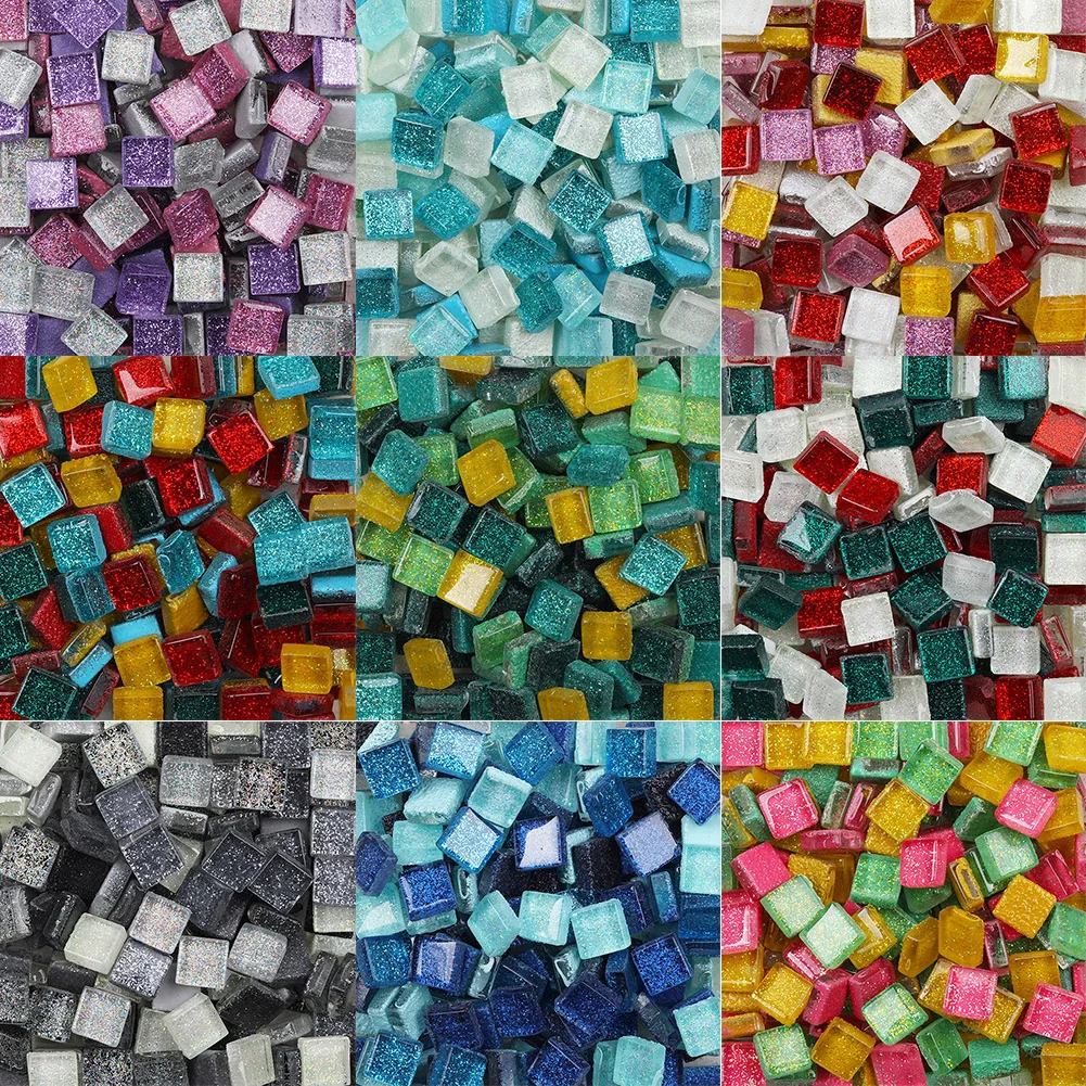 500Pcs 1x1cm Ceramic Mix-color Square Glitter DIY Craft Mosaic Tiles Home Decor