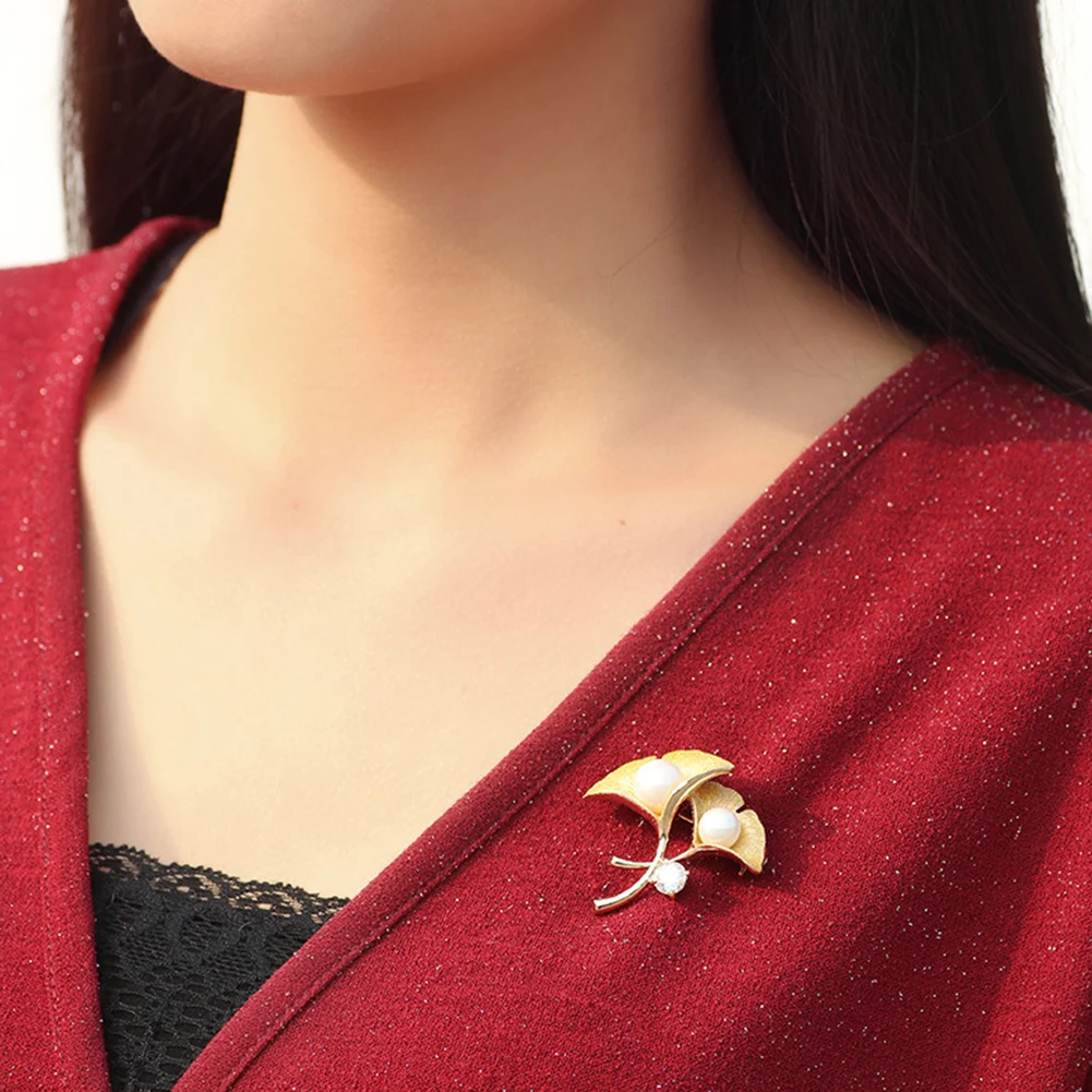 Creative ginkgo leaf shape is inlaid with beautiful cubic zirconia and faux pearl, adding great elegance to the brooch pin.