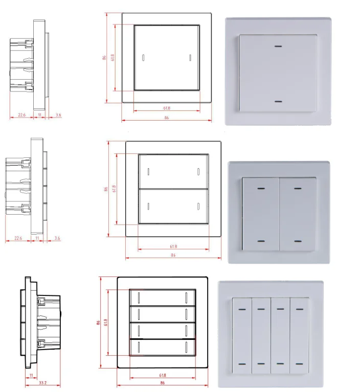Серия смарт-панелей имеет три варианта: одна каскадная две клавиши, две каскадные четыре клавиши, четыре каскадные восемь клавиш. Панель соединена с системой стандартным проводным терминалом и кабелем шины KNX без дополнительного модуля питания. Все функции на смарт-панели импортированы VD3/VD4 в ETS. Затем соответствующие функции выбираются путем изменения всех параметров.