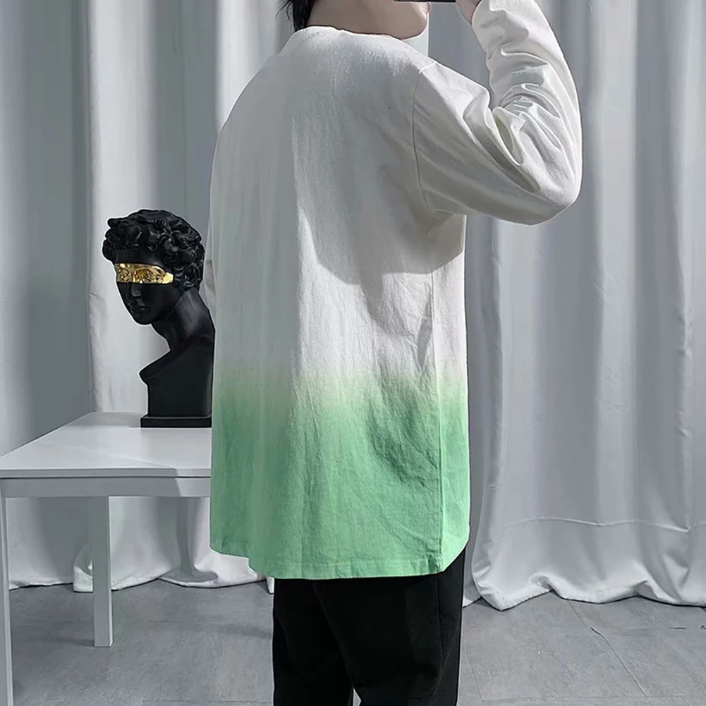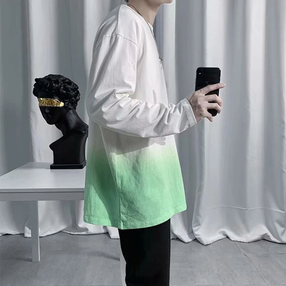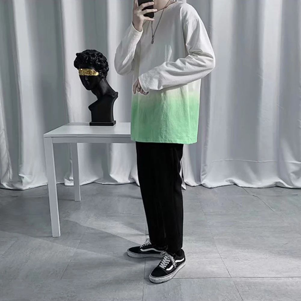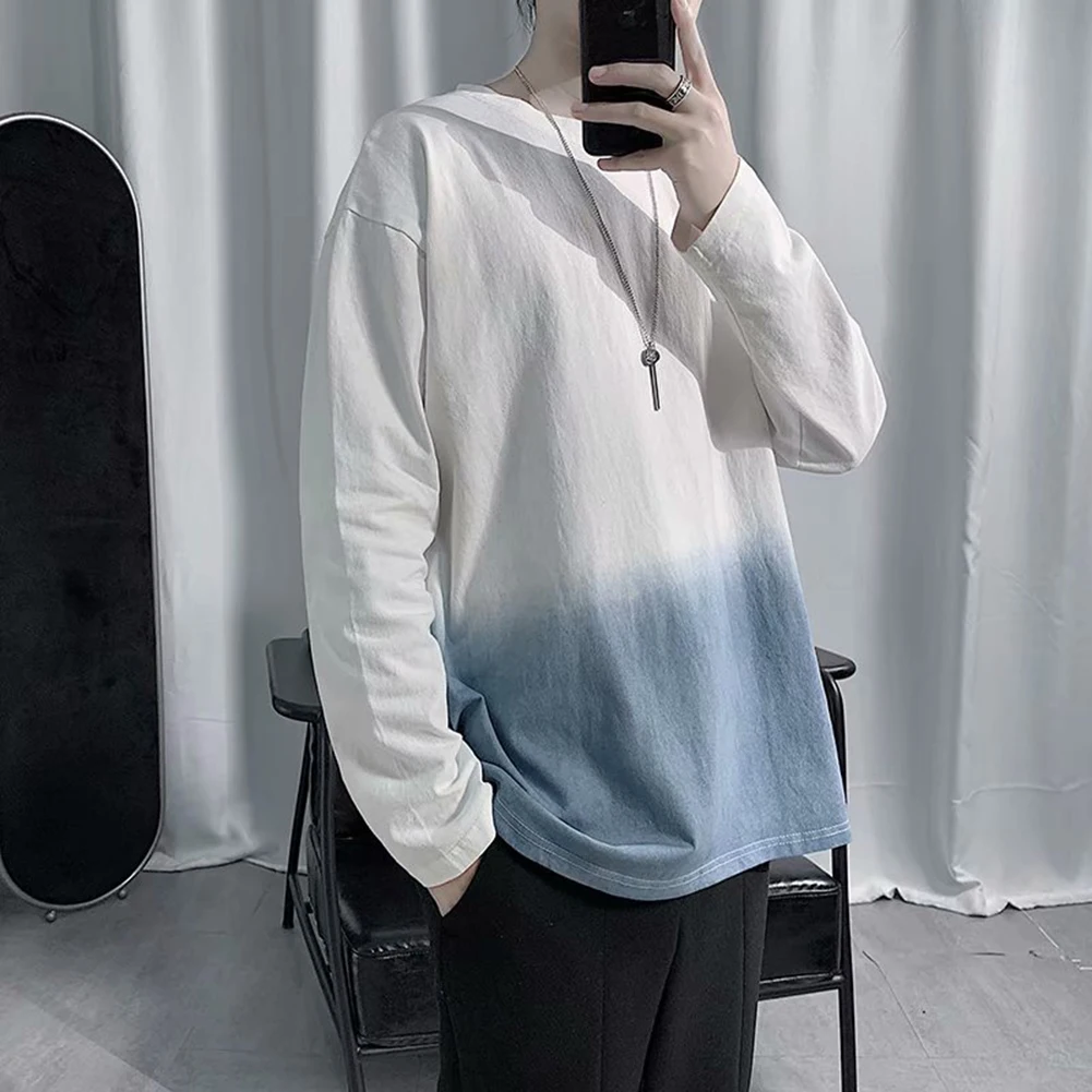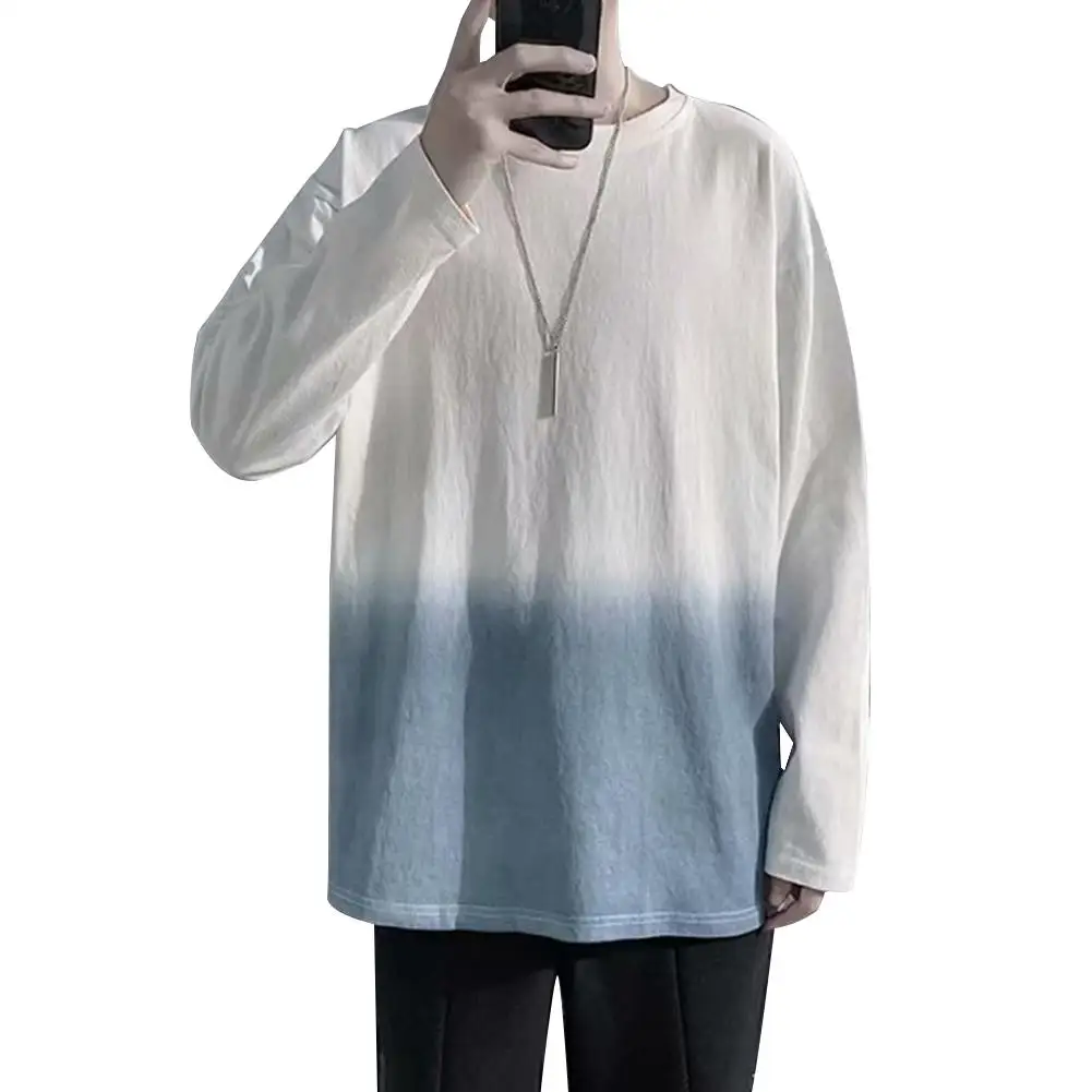 Модная мужская Свободная футболка с градиентом и длинным рукавом с круглым вырезом