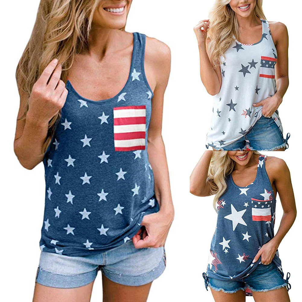 Women US Flag Tank Top July 4th Loose Fit Sleeveless Stars Stripes T Shirt Vest