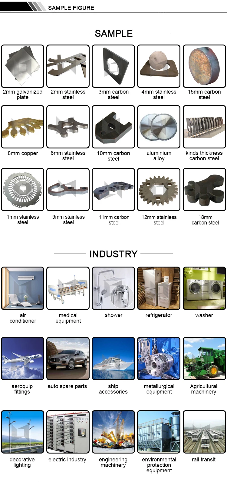 Применяется в обработке листового металла, авиации, космическом пространстве, электронике, электроприборах, детали метро, автомобилях, машинах, точных компонентах, кораблях, металлургическом оборудовании, лифте, бытовой технике, подарках и ремеслах, обработка инструментов, украшение, реклама, Иностранная обработка металла различные обрабатывающие отрасли производства.