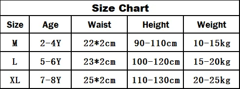 M-для От 2 до 4 лет, талия 22*2 см, длина брюк 15 см, высота 90-110 см, вес 10-15 кгL -- для От 5 до 6 лет, талия 23*2 см,Длина брюк 15 см,Высота 100-120 см, Вес 15-20 кг по самой низкой ценеXL -- для От 7 до 8 лет, талии 25*2 см,Длина брюк 15 см,Высота 110-130 см, Вес 20-25 кг
