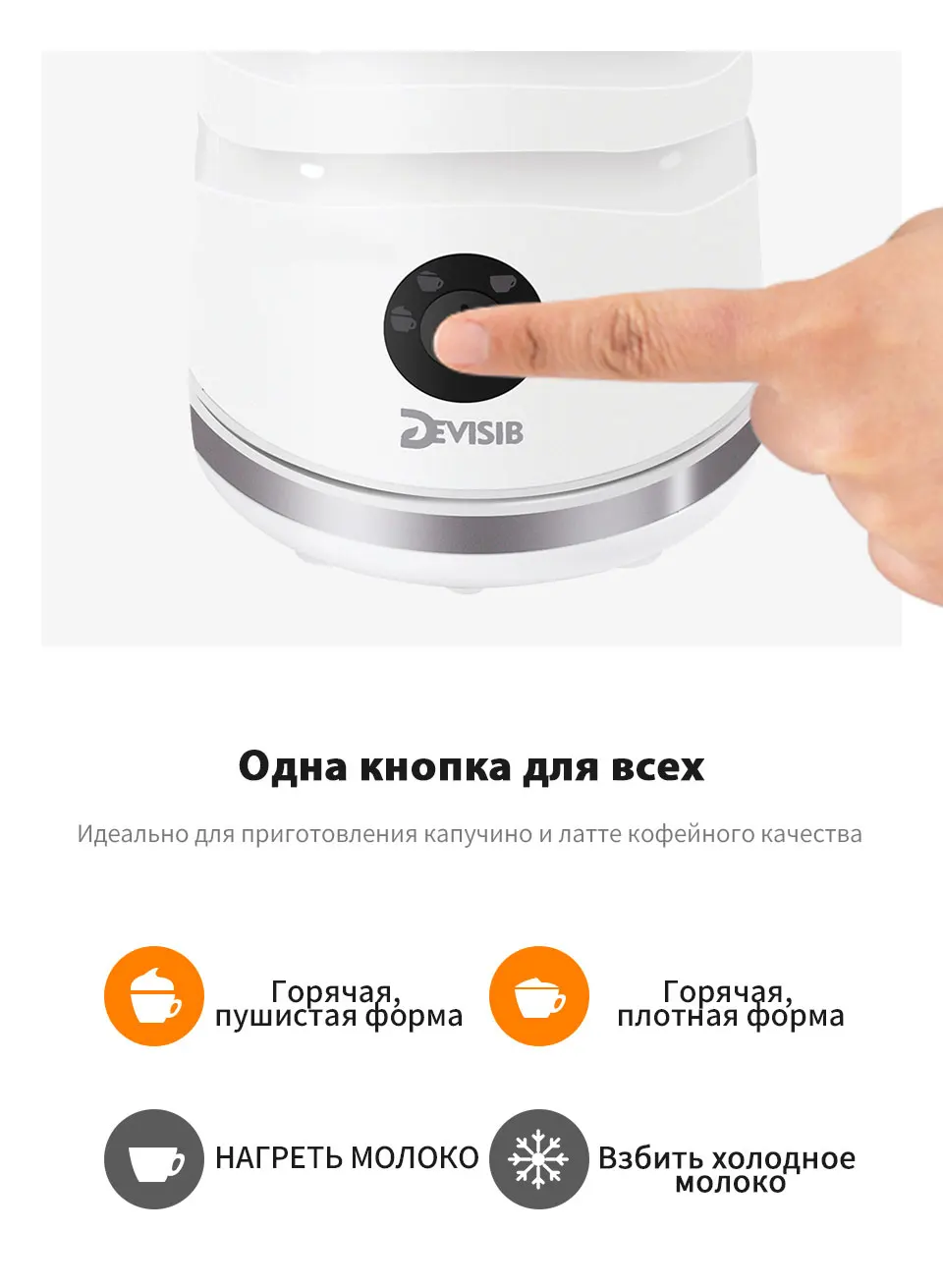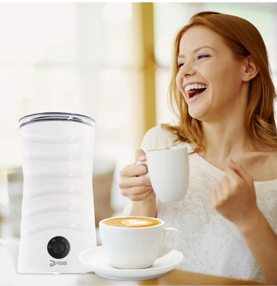 Домашнее кафе - Электрический вспениватель молока DEVISIB каждый день балуйте своих близких вкусом сочного капучино и латте дома. Всегда подходящая пена - с четырьмя восхитительными вариантами вспенивания и нагрева: один венчик для взбивания позволяет получить множество различных блюд. Прочный и стильный дизайн: внутренняя поверхность из высококачественной нержавеющей стали с антипригарным покрытием для гигиеничной очистки и длительного срока службы; изогнутый носик для минимизации утечек.
