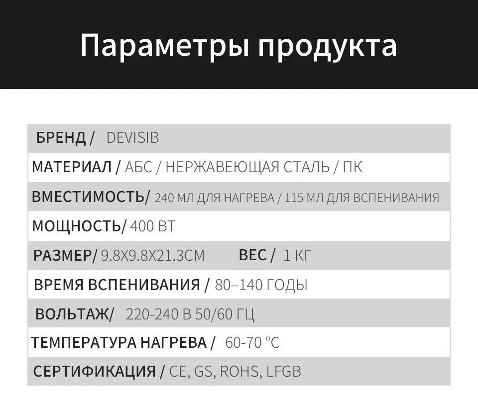 1 x DEVISIB вспениватель молока