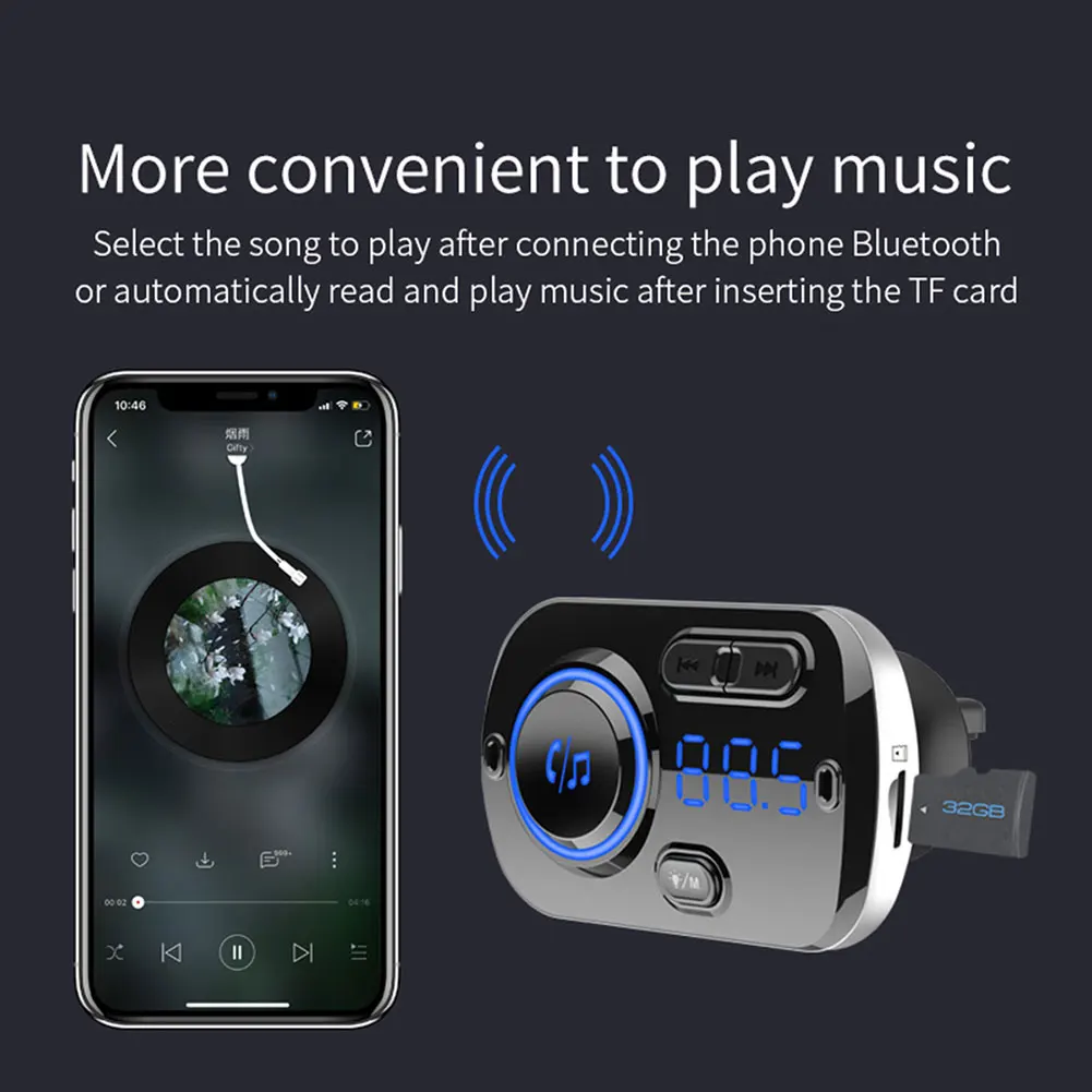 Bluetooth Dual USB зарядное устройство Автомобильный fm-передатчик громкой связи MP3 аудио плеер